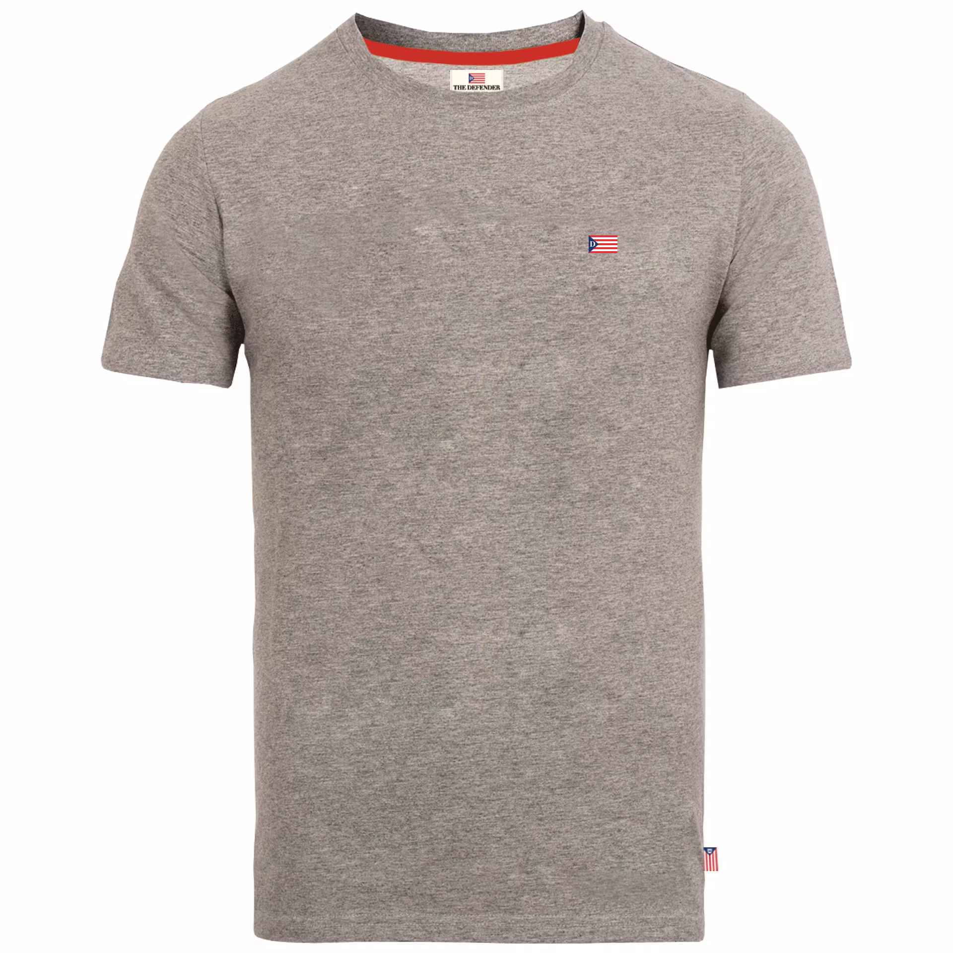 Vår gråmelerade herr t-shirt: Elton är perfekt för dig som vill ha en stilren look med en touch av elegants. T-shirten är tillverkad i högkvalitativ 100% mjuk och borstad bomull och har en flagga som brodyr på bröstet som ger den extra karaktär. Med sin självklara passform är denna t-shirt ett utmärkt val för alla tillfällen. Låt denna t-shirt bli en favorit i din garderob och ge din outfit det där lilla extra